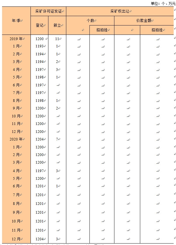 注:有效采礦許可證個(gè)數(shù)為自治區(qū)級發(fā)證個(gè)數(shù),即1月到當(dāng)月累計(jì)數(shù)。