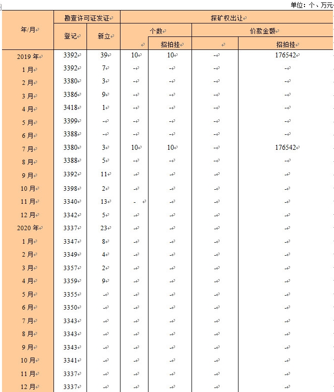 注:有效勘查許可證個(gè)數(shù)為1月到當(dāng)月累計(jì)數(shù)。