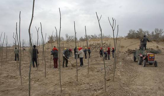 內(nèi)蒙古自治區(qū)巴彥淖爾市磴口縣群眾在烏蘭布和沙漠植樹造林