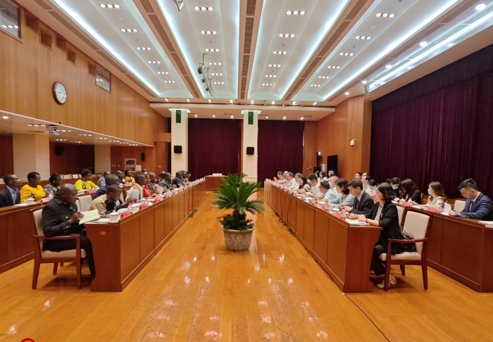 9月4日上午,烏干達(dá)執(zhí)政黨全國抵抗運(yùn)動(dòng)(“烏抵運(yùn)”)總書記陶德旺(Richard Awany Todwong)率該黨干部考察團(tuán)到訪中共中央黨史和文獻(xiàn)研究院。受曲青山院長委托,黃一兵副院長率院相關(guān)部門負(fù)責(zé)同志與陶德旺總書記一行25人進(jìn)行座談,在座談會(huì)上向來賓專題介紹了中共二十大精神、習(xí)近平新時(shí)代中國特色社會(huì)主義思想和中國式現(xiàn)代化理論。對外合作交流局局長楊明偉主持座談會(huì)。
