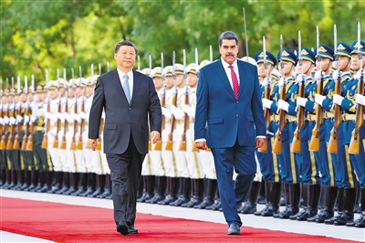習近平指出,中國和委內瑞拉是相互信賴的好朋友、共同發(fā)展的好伙伴。近年來,中委兩國都走過了極不平凡的發(fā)展歷程,雙方在國際風云變幻中相互支持,結下了“鐵桿”情誼。中方始終從戰(zhàn)略高度和長遠角度看待發(fā)展同委內瑞拉關系,堅定支持委方維護國家主權、民族尊嚴、社會穩(wěn)定的努力,堅定支持委方反對外部干涉的正義事業(yè)。中委建立全天候戰(zhàn)略伙伴關系,符合兩國人民共同期待,順應歷史發(fā)展大勢。雙方要推動中委戰(zhàn)略合作結出更多碩果,給兩國人民帶來更多福祉,也為世界和平和發(fā)展注入更多正能量。