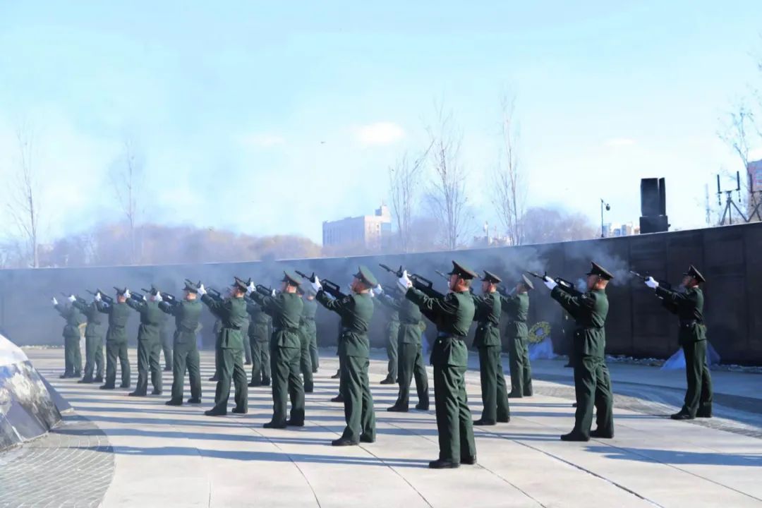 圖為27名禮兵鳴槍現(xiàn)場。曹舒昊 攝
