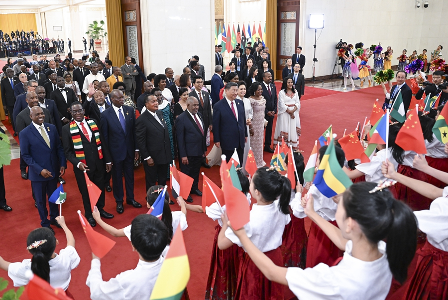 9月的北京,秋高氣爽。雄偉的人民大會(huì)堂內(nèi),中國國旗和中非合作論壇成員國國旗以及非洲聯(lián)盟旗幟交相輝映。