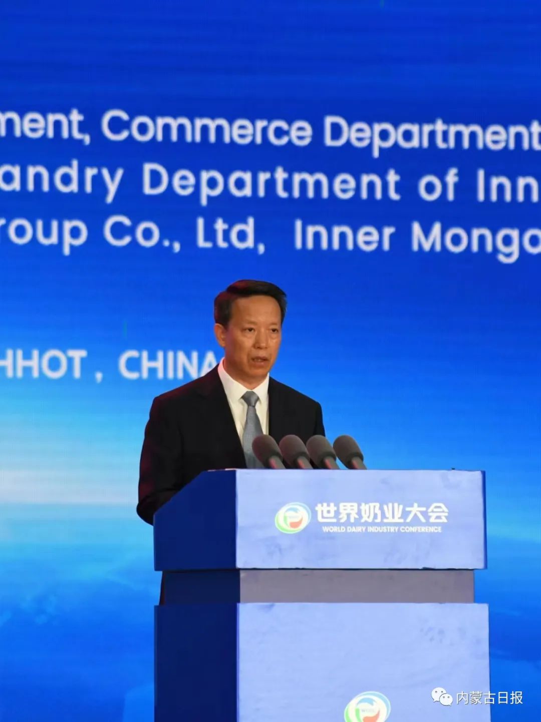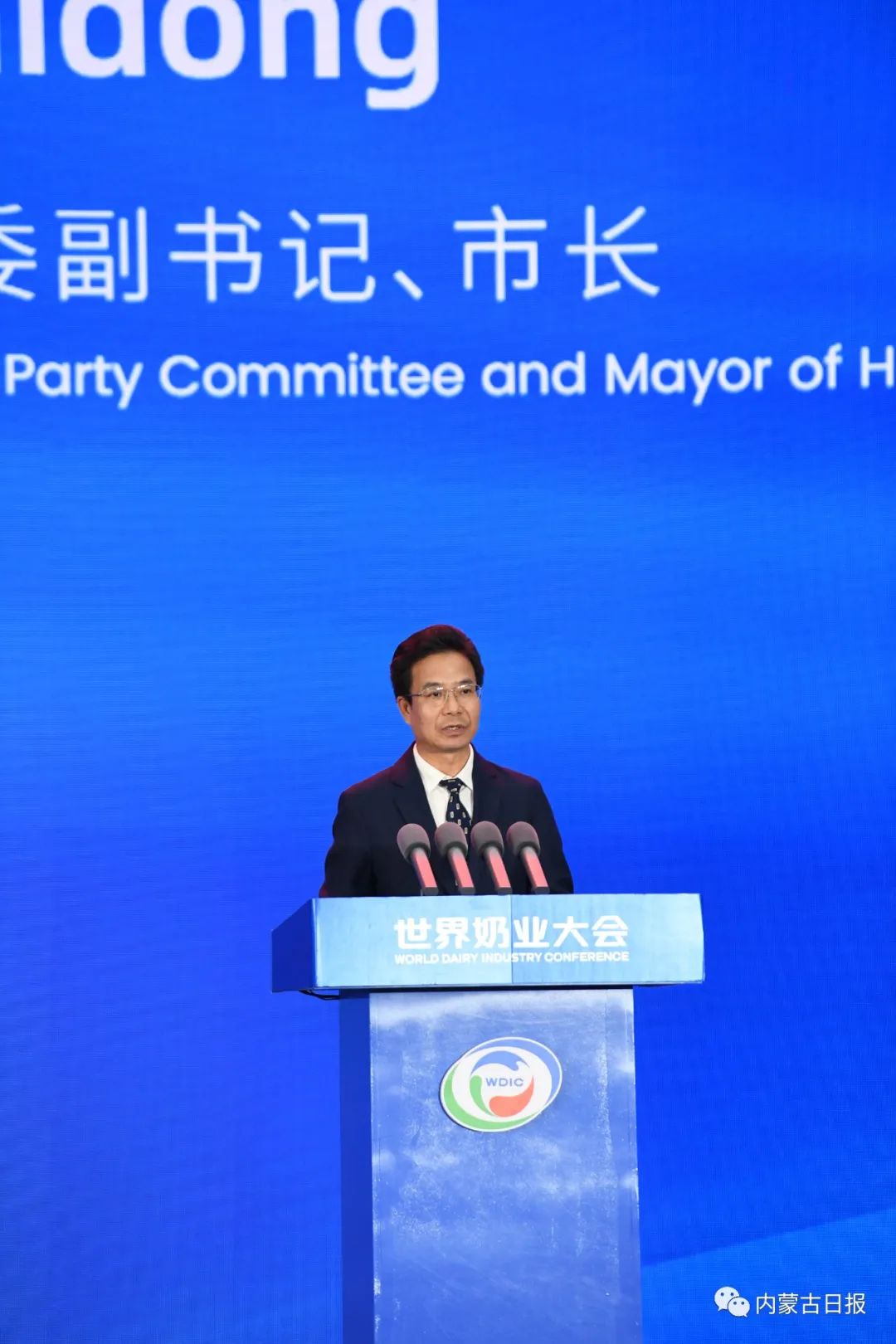 呼和浩特市委副書記、市長賀海東作呼和浩特奶產(chǎn)業(yè)推介。記者 韓卿立 攝