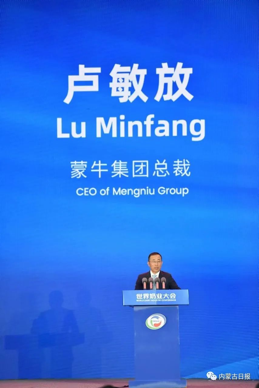 蒙牛集團總裁盧敏放作主旨演講。記者 王曉博 攝
