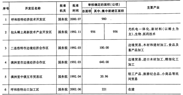 備注:六批合計(jì)有222家國家級開發(fā)區(qū)通過審核,其中內(nèi)蒙古自治區(qū)通過審核的6家開發(fā)區(qū)共核準(zhǔn)面積2917.96公頃。