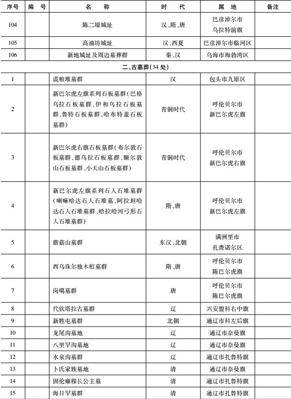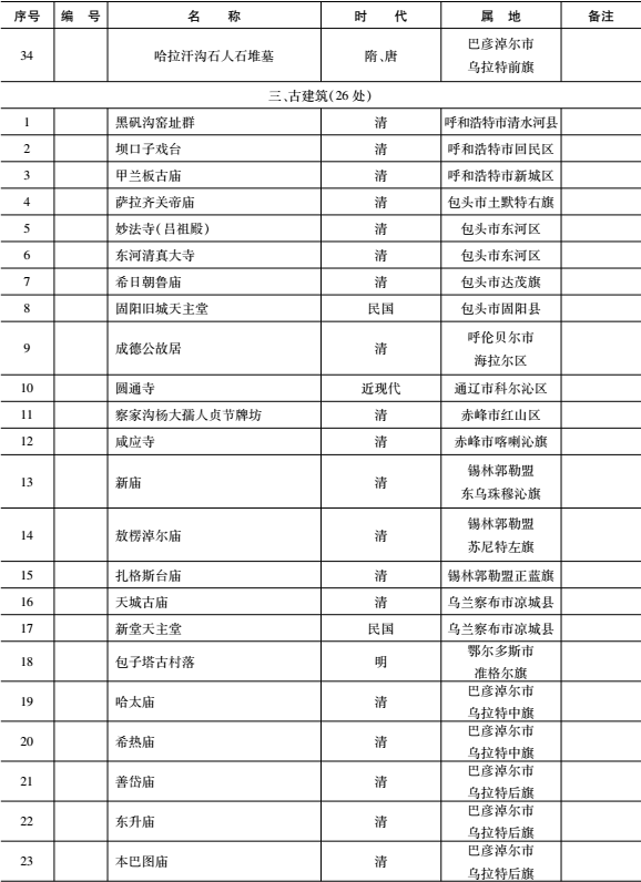 附件:內(nèi)蒙古自治區(qū)第五批自治區(qū)級重點(diǎn)文物保護(hù)單位名單
