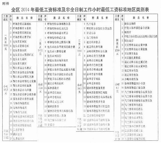 根據(jù)原勞動(dòng)和社會(huì)保障部《最低工資規(guī)定》(2004第21號(hào)令),結(jié)合我區(qū)經(jīng)濟(jì)發(fā)展和職工工資水平的增長(zhǎng)情況,自治區(qū)人民政府決定調(diào)整自治區(qū)2014年最低工資標(biāo)準(zhǔn)和非全日制工作小時(shí)最低工資標(biāo)準(zhǔn)?,F(xiàn)將有關(guān)事宜通知如下: