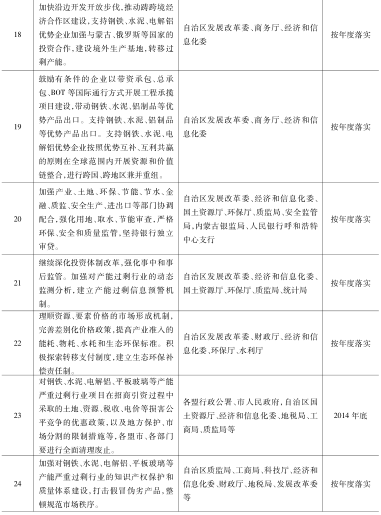 在提前一年完成“十二五”鋼鐵、水泥、電解鋁、平板玻璃等行業(yè)淘汰落后產(chǎn)能目標任務的基礎上,進一步提高環(huán)保、能耗、質量標準,按照國家相關要求,自治區(qū)經(jīng)濟和信息化委要會同相關部門,制定產(chǎn)能嚴重過剩行業(yè)加快淘汰落后產(chǎn)能和引導過剩產(chǎn)能退出方案,報自治區(qū)人民政府審定后按年度實施。新建或改擴建產(chǎn)能嚴重過剩行業(yè)項目,實施等量或減量產(chǎn)能置換,由項目所在盟行政公署、市人民政府制定產(chǎn)能置換方案,經(jīng)自治區(qū)經(jīng)濟和信息化委審核,報自治區(qū)人民政府審定后向社會公示,同時將置換產(chǎn)能列入淘汰名單,由自治區(qū)經(jīng)濟和信息化委監(jiān)督落實。
