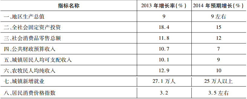 2014年全區(qū)國民經(jīng)濟(jì)和社會發(fā)展計(jì)劃主要指標(biāo)
