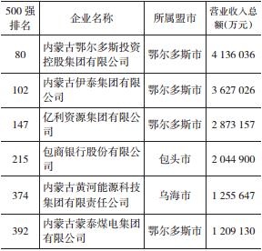 【百強(qiáng)民營企業(yè)榜單】 8月25日,全國工商聯(lián)發(fā)布了2015中國民營企業(yè)500強(qiáng),自治區(qū)12家民營企業(yè)入圍。同時(shí),內(nèi)蒙古鄂爾多斯投資控股集團(tuán)有限公司、內(nèi)蒙古黃河能源科技集團(tuán)有限責(zé)任公司、內(nèi)蒙古德晟實(shí)業(yè)集團(tuán)有限公司、內(nèi)蒙古君正能源化工股份有限公司等4家公司入圍2015中國民營企業(yè)制造業(yè)500強(qiáng);包商銀行股份有限公司、內(nèi)蒙古明華能源集團(tuán)有限公司入圍2015中國民營企業(yè)服務(wù)業(yè)100強(qiáng)。入圍2015中國民營企業(yè)500強(qiáng)榜單如下: