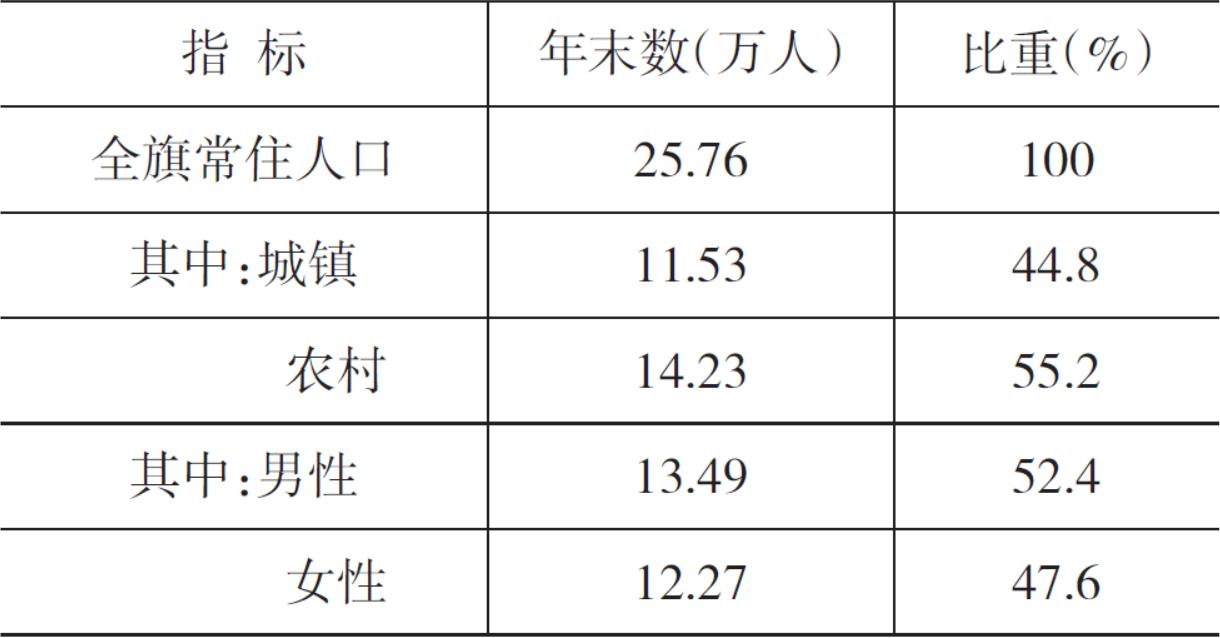 年末,全旗常住人口為25.76萬人,比上年末增加0.08萬人。其中:城鎮(zhèn)人口為11.53萬人,占總人口的比重為44.8%;鄉(xiāng)村人口14.23萬人,占總人口的比重為55.2%。出生率為6.89‰,死亡率為4.81‰,自然增長率為2.08‰。