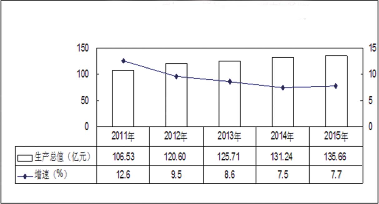 圖1 2011—2015杭錦后旗生產總值及增長速度