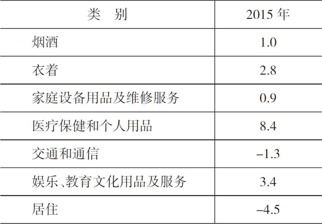 價格水平漲幅較低。全年居民消費價格總水平累計同比上漲0.8%。分類別看,調查的八大類商品價格“五漲三降”。煙酒類上漲1.0%;衣著類上漲2.8%;家庭設備用品及維修服務類上漲0.9%;醫(yī)療保健和個人用品類上漲8.4%;娛樂教育文化用品及服務類上漲3.4%;食品類下降0.5%;交通和通信類下降1.3%;居住類下降4.5%。從流通、生產、建設領域看,商品零售價格下降1.2%,農業(yè)生產資料價格下降0.4%;服務項目價格總水平上漲0.8%。