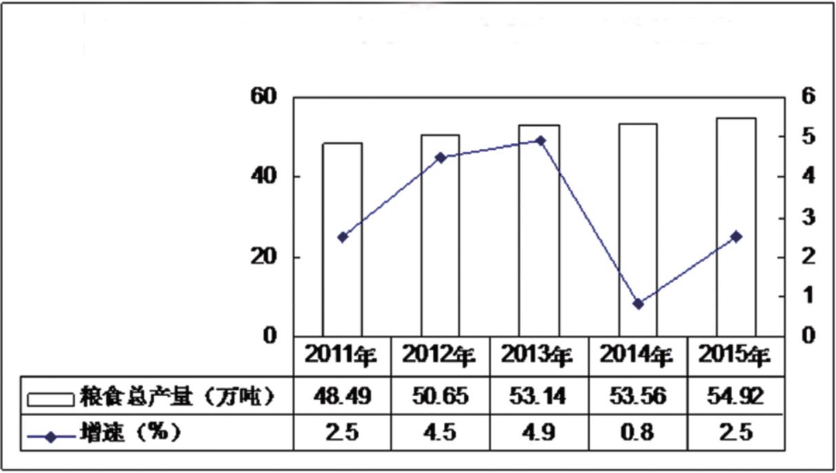 圖2 2011—2015年杭錦后旗糧食總產值及增長速度