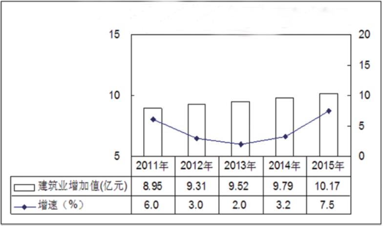 圖3 2011——2015年杭錦后旗建筑業(yè)增加值及增長速度