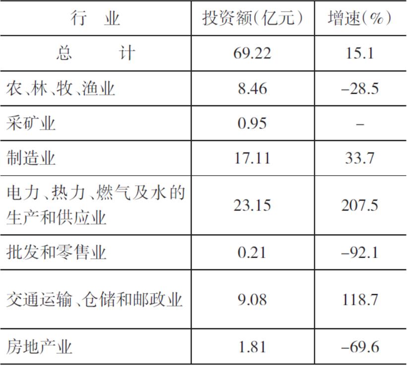 【固定資產投資】 固定資產投資穩(wěn)步增長。固定資產投資69.22億元,比上年增長15.1%。其中:建安工程56.42億元,增長12.6%;設備工器具購置及其他12.80億元,增長27.7%。從投資主體看,全年國有經濟投資30.25億元,增長15.0%;非國有經濟投資38.97億元,增長15.2%。分產業(yè)看,第一產業(yè)投資8.45億元,比上年下降28.5%;第二產業(yè)投資41.21億元,增長102.7%,全部為工業(yè)投資;第三產業(yè)投資19.56億元,下降30.1%。新增固定資產67.52億元,增長28.8%。