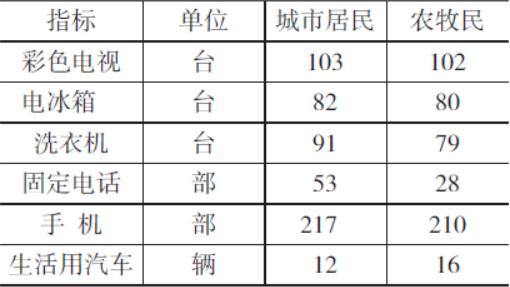 城鄉(xiāng)居民每百戶家庭耐用品擁有量情況
