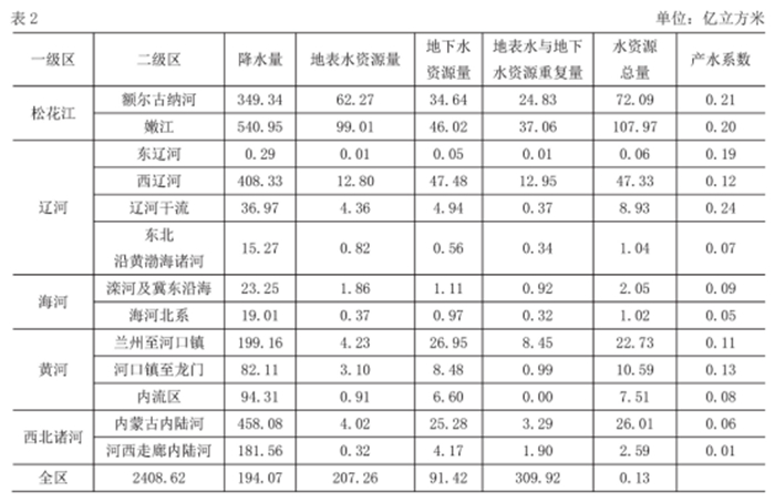 2017年內(nèi)蒙古水資源分區(qū)水資源量表