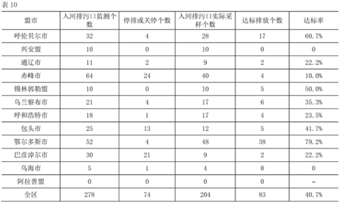 2017年全區(qū)各盟市入河排污口達(dá)標(biāo)評價表