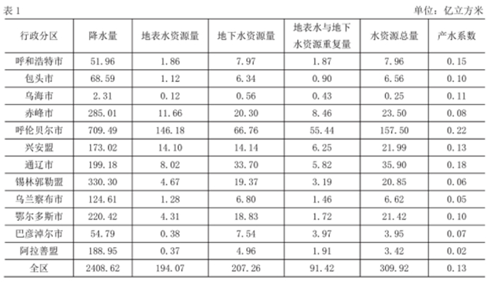 2017年內(nèi)蒙古行政分區(qū)水資源量表