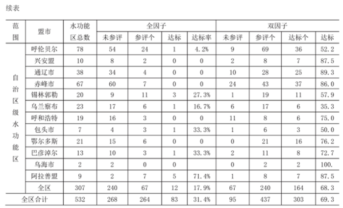 (3)各盟市水功能區(qū)雙因子水質(zhì)達(dá)標(biāo)評價