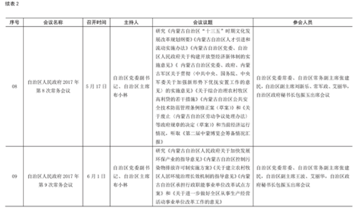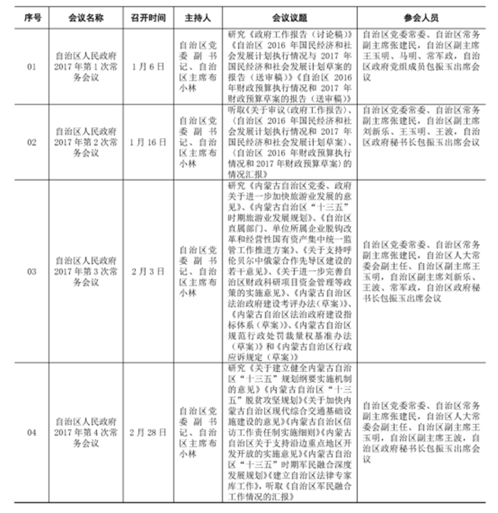 內(nèi)蒙古自治區(qū)人民政府常務(wù)會(huì)議統(tǒng)計(jì)表