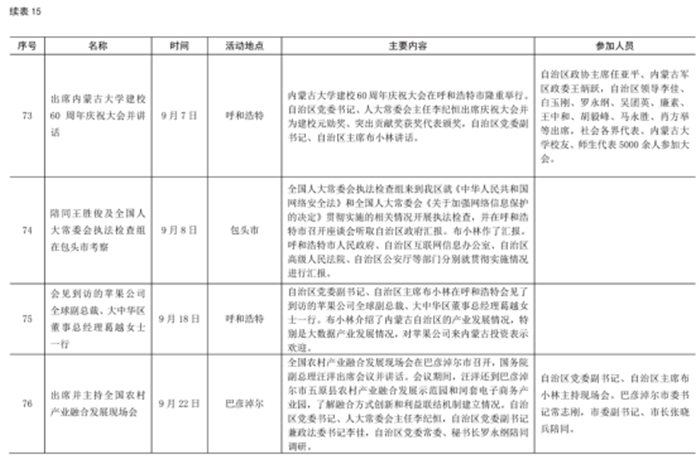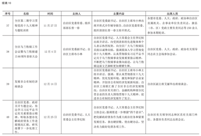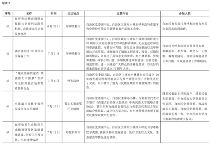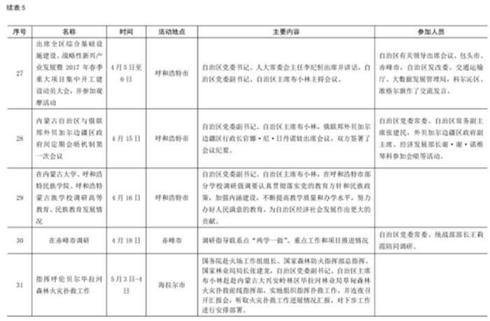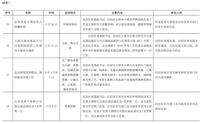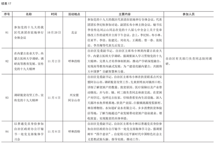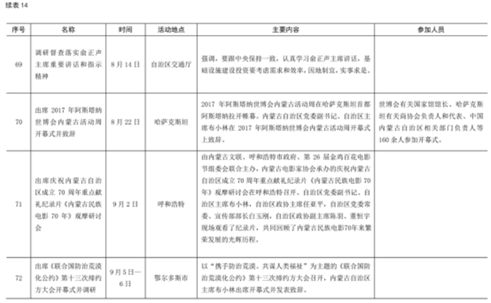 2017 年自治區(qū)主席出席重要活動(dòng)情況統(tǒng)計(jì)