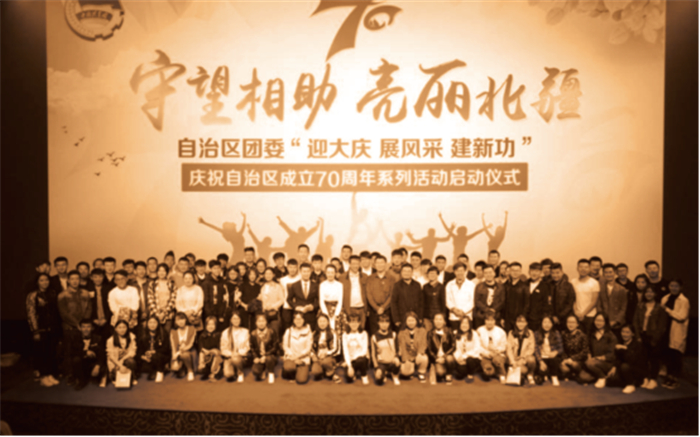【慶祝自治區(qū)成立70周年系列活動】 開展“愛我亮麗內蒙古·爭做‘六有’好青年”全區(qū)大中學生主題教育實踐、“飛揚紅領巾?愛我內蒙古”百萬少先隊員展風采、“青春獻禮70載·志愿服務亮北疆”等迎慶活動。舉辦“不忘初心跟黨走”全區(qū)各族各界青少年慶祝自治區(qū)成立70周年文藝晚會。自治區(qū)成立70周年系列網上直播活動吸引觀眾百萬余人,“青春點贊內蒙古”網絡專題活動點擊量突破1.6億人次。