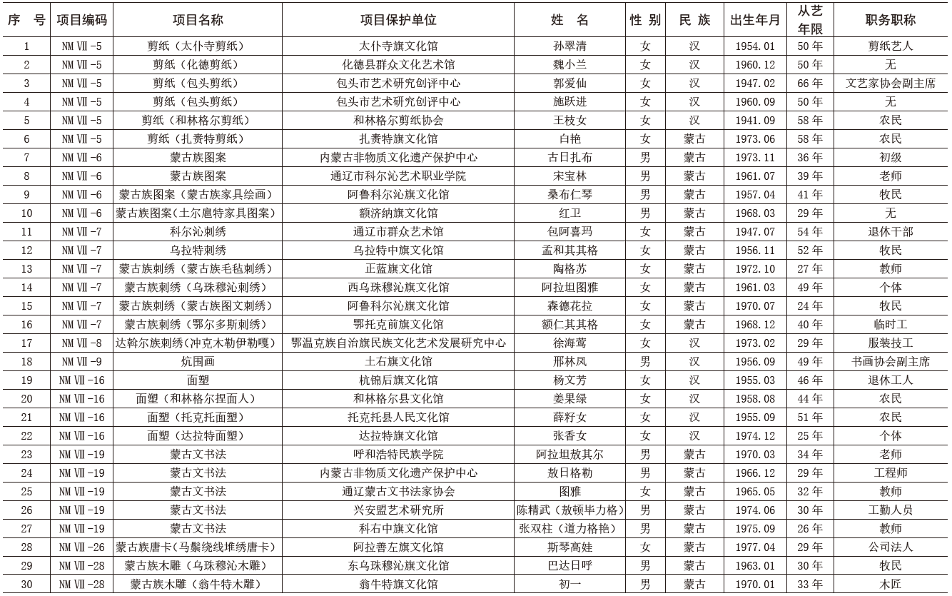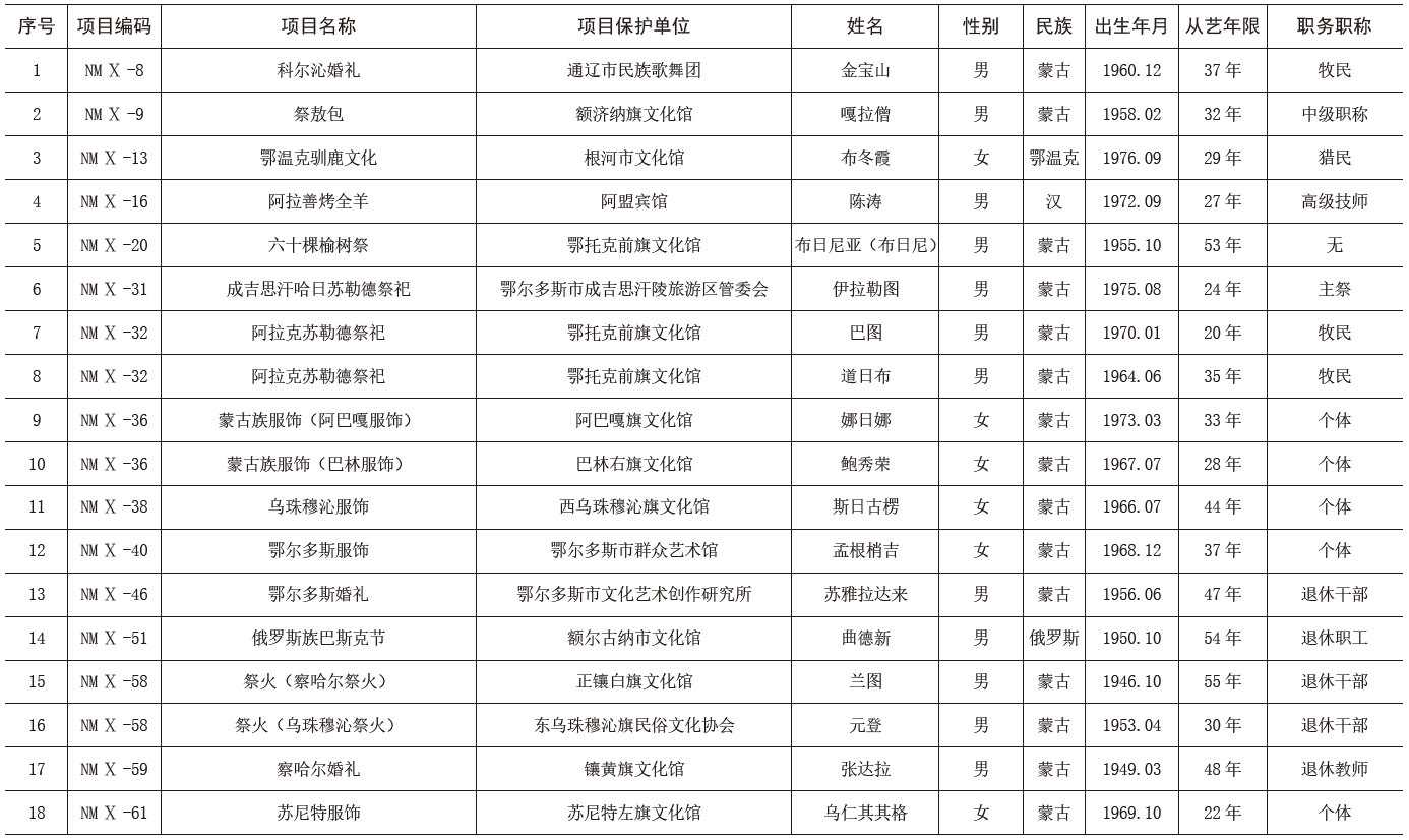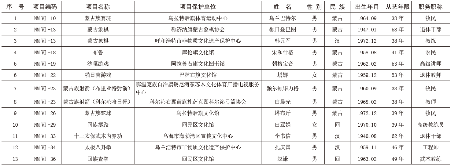 - 第六批自治區(qū)級非物質(zhì)文化遺產(chǎn)代表性項(xiàng)目代表傳承人名單