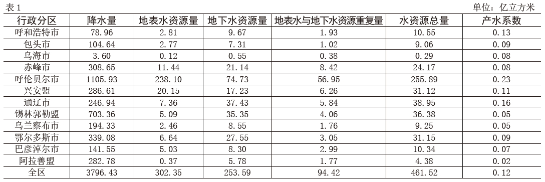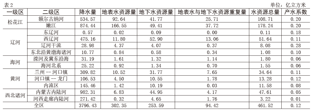 2018年內(nèi)蒙古水資源分區(qū)水資源量表
