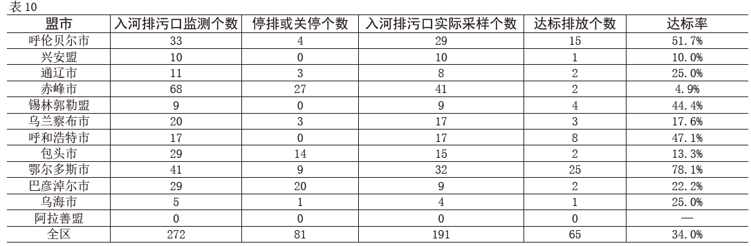 2018年全區(qū)各盟市入河排污口達(dá)標(biāo)評(píng)價(jià)表