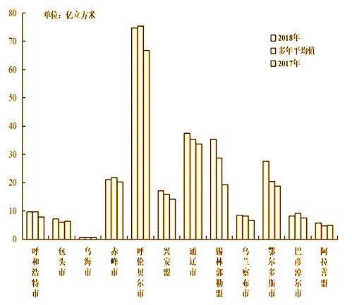 2018年全區(qū)地表水資源量302.35億立方米,折合年徑流深26.1毫米,較上年增加55.8%,較多年平均值偏少25.6%。