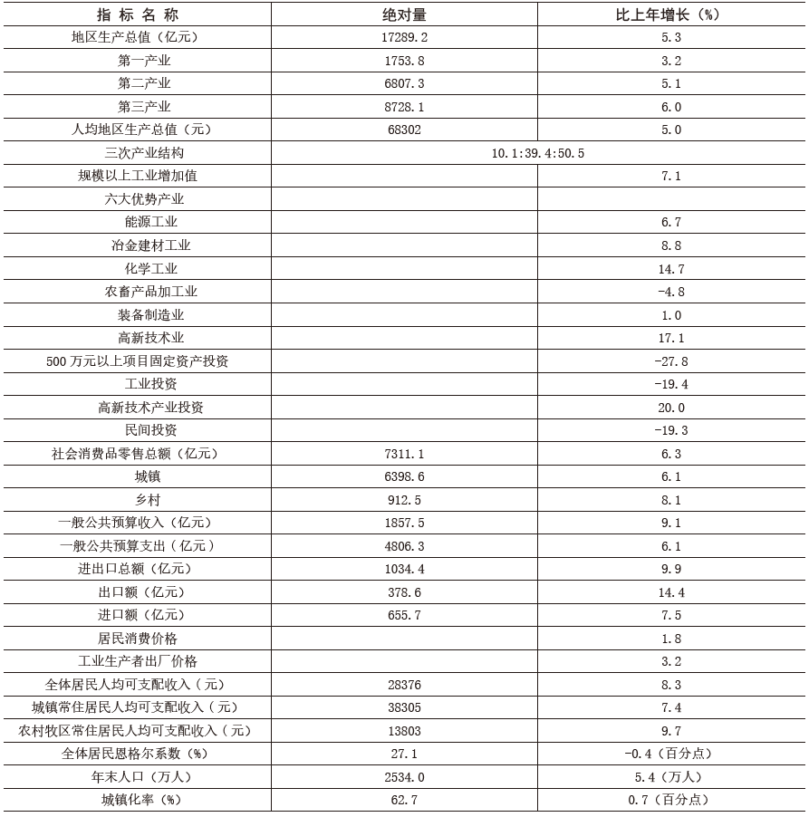 注:1.地區(qū)生產總值、規(guī)模以上工業(yè)增加值及其分類項目增長速度均按可比價計算;全區(qū)及分城鄉(xiāng)居民均可支配收入增速為名義增速;其他指標增長速度均按現價計算。