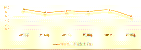 圖1:2013年—2018年地區(qū)生產(chǎn)總值增速