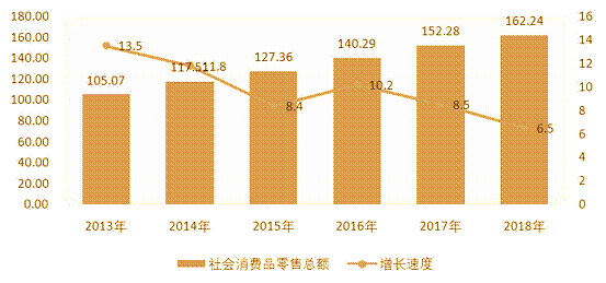 圖5:2013年—2018年社會消費品零售總額