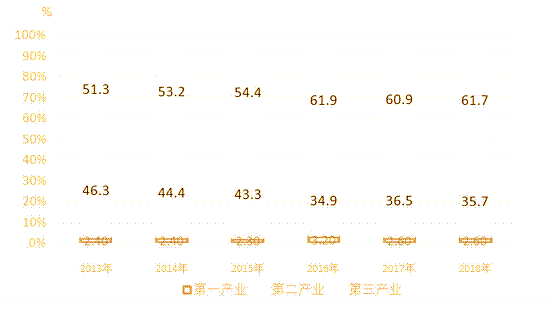 圖2:2013年—2018年三次產(chǎn)業(yè)增加值占地區(qū)生產(chǎn)總值比重