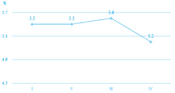 2019年內(nèi)蒙古生產(chǎn)總值季度累計增速圖