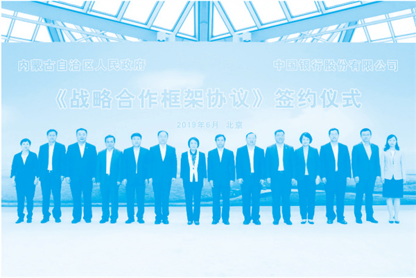 6月5日,中國銀行與內(nèi)蒙古自治區(qū)人民政府簽署戰(zhàn)略合作框架協(xié)議(中行內(nèi)蒙古分行 提供)