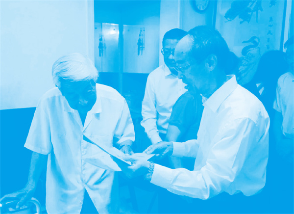 7月2日,民革黨中央主席萬鄂湘看望慰問民革老黨員、黃埔老兵閆秉心(民革內(nèi)蒙古自治區(qū)委 提供)