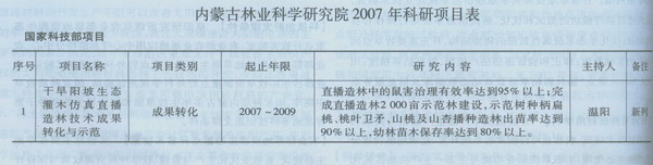 2007年,內(nèi)蒙古林科院有2項(xiàng)成果獲獎(jiǎng),1項(xiàng)成果通過(guò)鑒定: