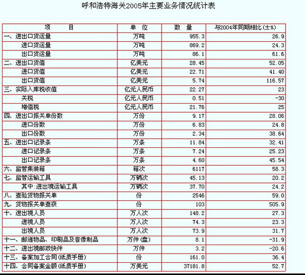 呼和浩特海關(guān)的業(yè)務(wù)基本呈區(qū)域狀分布,呼和浩特海關(guān)本部除履行職能管理外,主要承擔(dān)機(jī)場、郵局監(jiān)管任務(wù)并辦理呼市地區(qū)和烏蘭察布市范圍內(nèi)的海關(guān)業(yè)務(wù),進(jìn)出口業(yè)務(wù)量不大,但海關(guān)業(yè)務(wù)門類比較齊全;隸屬二連海關(guān)屬于典型的口岸海關(guān),以一般貿(mào)易為主,行郵、旅檢等業(yè)務(wù)為輔,業(yè)務(wù)量大,進(jìn)出口商品主要是原油、原木、銅精礦、化工產(chǎn)品等大宗物資,是關(guān)區(qū)主要的業(yè)務(wù)和稅收支柱;隸屬包頭海關(guān)屬于內(nèi)陸型海關(guān),轄區(qū)國有大中型企業(yè)集中,以加工貿(mào)易和一般貿(mào)易轉(zhuǎn)關(guān)運輸業(yè)務(wù)為主,業(yè)務(wù)量呈逐年增長態(tài)勢。關(guān)區(qū)各關(guān)承擔(dān)季節(jié)性口岸監(jiān)管任務(wù),其中,呼和浩特海關(guān)現(xiàn)場業(yè)務(wù)處負(fù)責(zé)甘其毛都口岸監(jiān)管。二連海關(guān)負(fù)責(zé)珠恩嘎達(dá)布其口岸監(jiān)管。包頭海關(guān)負(fù)責(zé)策克口岸和滿都拉口岸監(jiān)管工作。