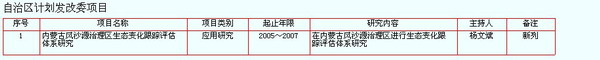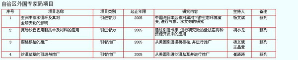 【科技合作】 在延續(xù)合作的項目中,與湖南師范大學(xué)、北京林業(yè)大學(xué)等單位合作研究的“亞洲中部水循環(huán)及其對全球變化的響應(yīng)”和“毛烏素沙地固沙造林示范模式與技術(shù)研究”項目研究工作進(jìn)展順利,另外2003年承擔(dān)的“氣候變化對中國內(nèi)蒙古干旱地區(qū)荒漠化的影響”和前兩項將在2006年全部完成。這些合作項目,將對自治區(qū)防沙止漠和綠化工程提供有力的科研數(shù)據(jù)。