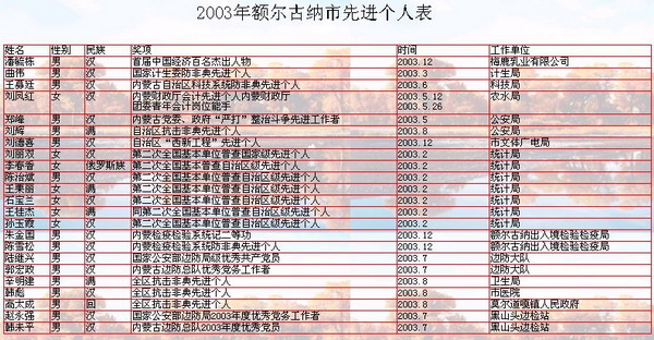 【森林大火】2003年5、6月旱情嚴重,天干物燥,額爾古納北部原始林區(qū)先后發(fā)生兩起森林大火,火線漫長,火勢兇猛,情況危急。額爾古納市委、市政府動員一切力量,誓死保住中國這塊最大的原始林區(qū)。先后調(diào)動4 000多名精干人員組成打火隊伍,日夜奮戰(zhàn)在森山老林百里火線上。在高溫和濃煙彌漫的火場,六大班子領(lǐng)導(dǎo)年富力強的都拼殺在火場第一線,年齡大的和身體較弱的組織后勤補給。打火隊伍共組織三個梯隊輪翻上陣,日夜不停。市政府撥款100多萬元和幾十輛卡車為打火勇士們做好后勤服務(wù)。經(jīng)過近1個月的苦戰(zhàn),終于撲滅大火,保住原始森林,無一人傷亡。一部分青年在火線上入黨,給其他青年樹立榜樣。