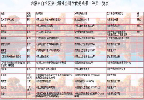 【評獎工作】成功組織自治區(qū)第七屆社會科學(xué)優(yōu)秀成果評獎工作。評獎工作在自治區(qū)黨委、政府的領(lǐng)導(dǎo)下,在全區(qū)廣大社科工作者、學(xué)會和盟市社科聯(lián)的支持下,經(jīng)歷成果申報、學(xué)會和盟市初評、學(xué)科專家組復(fù)評、自治區(qū)評委員終評(含公示)四個階段。從申報的876項成果中,評出一等獎13項,其中著作9項,論文4項;榮譽獎15項,其中著作10項,論文5項;特別獎4項,其中著作1項,論文3項;二等獎101項,其中著作44項,論文57項;三等獎136項,其中著作36項,論文100項;青年獎103項,其中著作9項,論文94項;優(yōu)秀獎445項。這屆獲獎成果涵蓋全區(qū)社會科學(xué)的各個重要學(xué)科,基礎(chǔ)學(xué)科245項,占總數(shù)的30%;應(yīng)用學(xué)科572項,占總數(shù)的70%,來自盟市、旗縣的獲獎成果150多項,占總數(shù)的19%。這些成果中,有的受到國內(nèi)外、區(qū)內(nèi)外的重視和肯定,有地對自治區(qū)黨委和政府決策起到參謀咨詢作用,有的為普及社會科學(xué)知識發(fā)揮重要作用,有的填補國家和自治區(qū)社會科學(xué)研究領(lǐng)域的某些空白,代表自治區(qū)社會科學(xué)的先進水平。