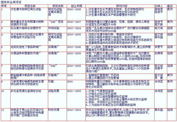 【科研成果】是年,內蒙古林科院承擔的“天牛生物控制技術開發(fā)與應用”等3個科技部農業(yè)科技成果轉化項目,通過科技部的驗收。承擔的國家林業(yè)局重點科研項目“沙生灌木良種區(qū)域化試驗”制定工作計劃,落實庫布其沙漠和科爾沁沙地兩處試驗示范區(qū)具體地點和試驗地塊,完成試驗區(qū)規(guī)劃方案及試驗樹種定植設計,根據不同灌木種特性摸索種子和苗條處理及保存技術,完成播種繁殖,部分樹種完成嫩枝扦插繁殖;承擔的自治區(qū)科技廳應用研究項目“內蒙古林木種質資源基因庫建設和擴繁技術研究”及1個招標項目和1個合作項目都按照合同規(guī)定全面完成計劃任務,計劃2005年接受科技廳的驗收。自治區(qū)招投標項目“綠色食品枸杞開發(fā)研究”在巴彥淖爾市建立枸杞良種選育及豐產栽培研究試驗基地,選育出“先杞1號”和“先杞2號”兩個枸杞優(yōu)良新品種,完成新品種的現(xiàn)場測試,得到專家的肯定,篩選出適宜的無公害防治農藥和豐產栽培技術。農業(yè)科技成果轉化項目“干旱、半干旱區(qū)微灌、噴灌設備的優(yōu)化和灌溉制度及配肥技術工程化示范”項目完成節(jié)水灌溉示范面積750畝,其中在毛烏素沙地防沙治沙實驗中心完成500畝(微灌、噴灌);在內蒙古林木種苗站沙爾沁基地完成200畝(微灌、噴灌);在兵州亥育苗科研基地完成50畝(噴灌),完成年度計劃目標;“十五”期間攻關項目“抗旱保水技術產品和配套使用技術”,進行試驗研究,擴大荒漠藻固沙試驗面積,對噴灑的荒漠藻生長量以及結皮硬度進行測定。對荒漠藻結皮進行對比研究。