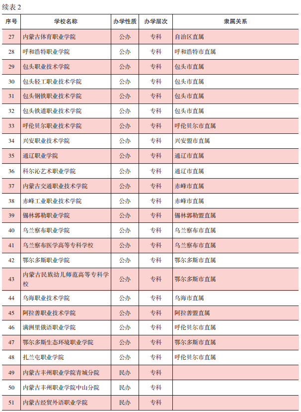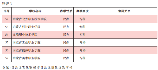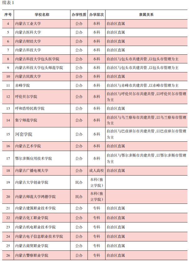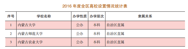 內(nèi)蒙古自治區(qū)高等學(xué)校設(shè)置情況