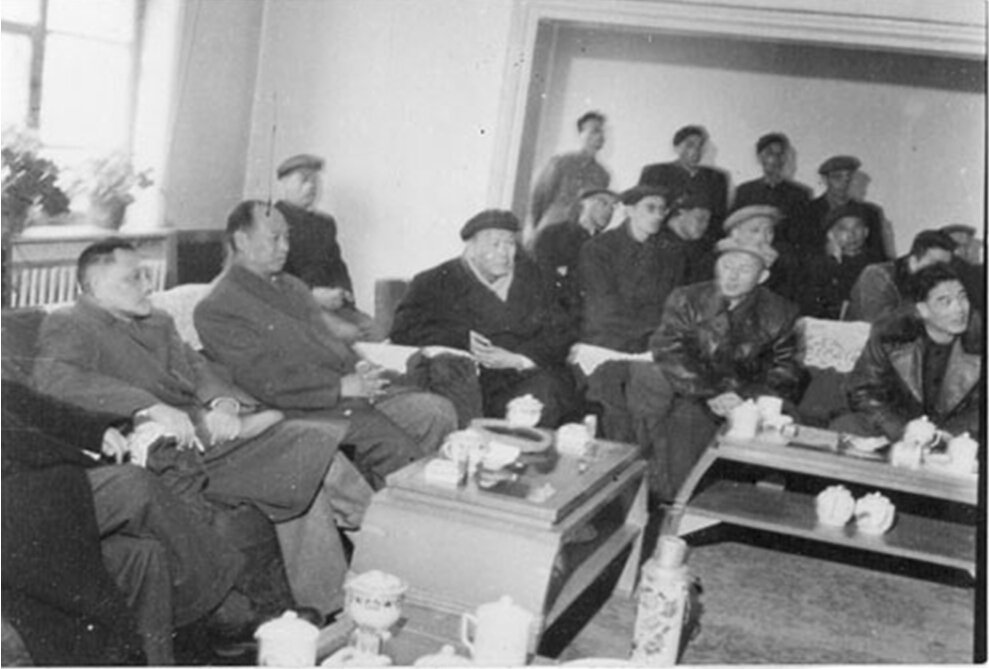 鄧小平(左一)、彭真(左二)、烏蘭夫(左三)在包鋼聽取匯報