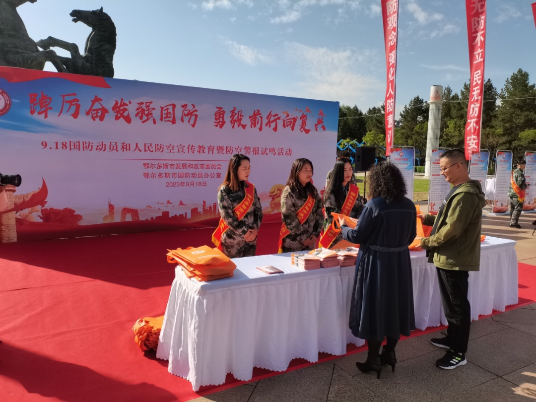 今天,主題為“踔厲奮發(fā)強國防 勇毅前行向復興”“9·18人民防空警報試鳴日”暨全民國防教育月主題活動在鄂爾多斯市康巴什區(qū)雙駒廣場舉行?;顒蝇F(xiàn)場設置宣傳臺向市民發(fā)放國防動員和人民防空宣傳冊以及宣傳品,通過全方位立體式宣傳,營造國防動員、人民防空人人關心、人人參與、人人維護的良好氛圍。