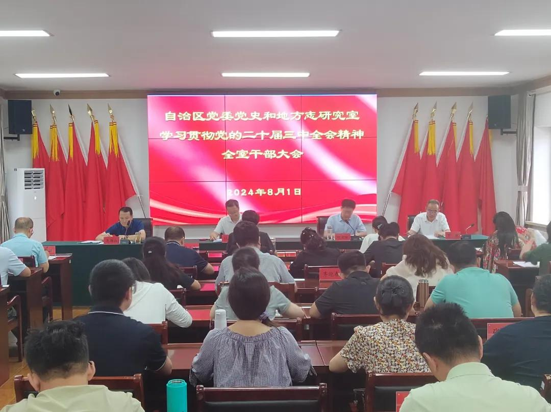 8月1日,內(nèi)蒙古自治區(qū)黨委黨史和地方志研究室主任杜軼鑫主持召開全室干部大會暨2024年度第10次理論學(xué)習(xí)中心組(擴大)集體學(xué)習(xí)會議,傳達(dá)學(xué)習(xí)黨的二十屆三中全會精神和自治區(qū)黨委十一屆八次全會精神,安排部署貫徹落實工作。